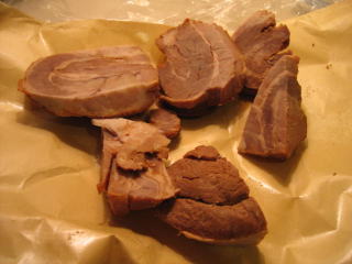 お弁当がかすむ位、冷えていても味のしっかりした、脂身の少ない美味しいチャーシューきり落しでした。