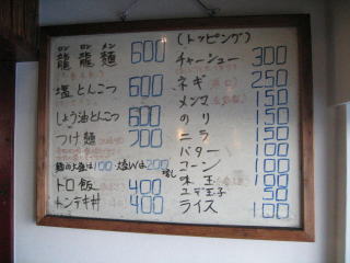 カレーとんこつ(辛口)などが増えましたが、基本メニューは昨年と変化はないようです。