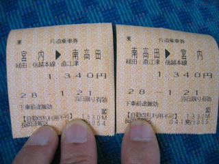 宮内駅駅員さんがが、ワンデーパスでは信越方面には行けませんよという声が聞こえました、車内で精算しますといって電車に乗りました。