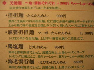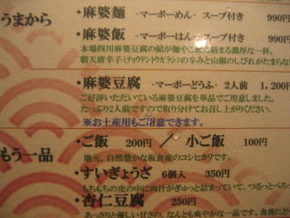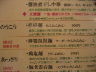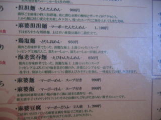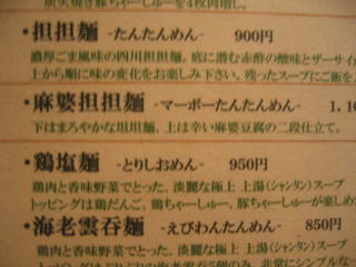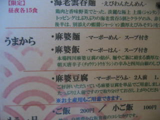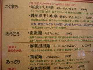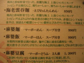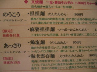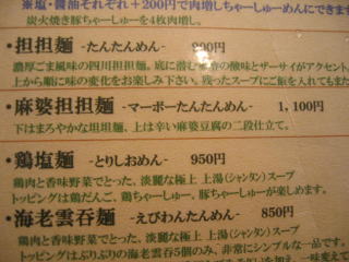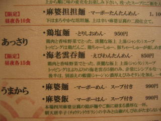 大好きな「麻婆麺」990円にしようか、限定昼夜各10食の「麻婆担担麺」1.100円にしようか迷います。