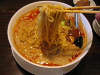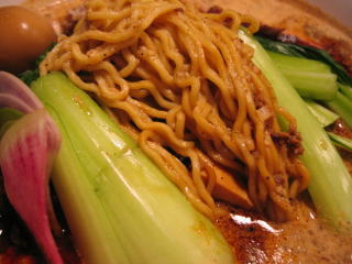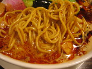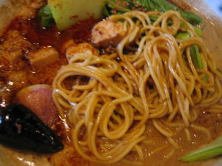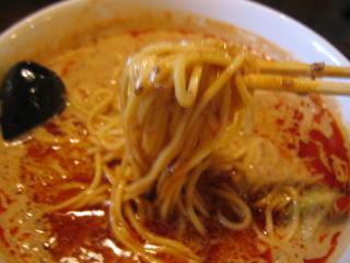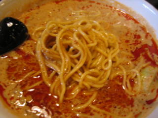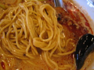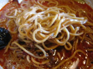 こちらは担担麺大盛、麺は中太麺でほぼストレートな麺です。
