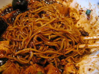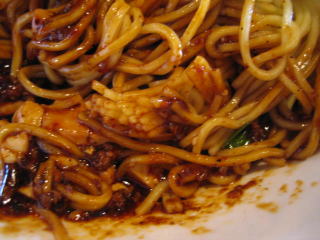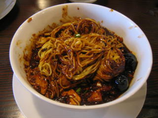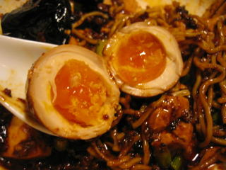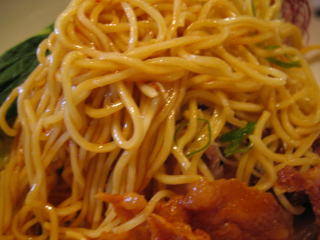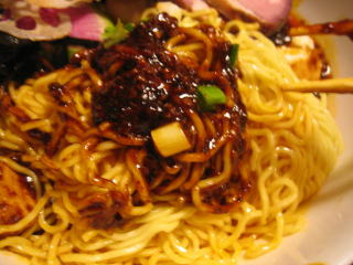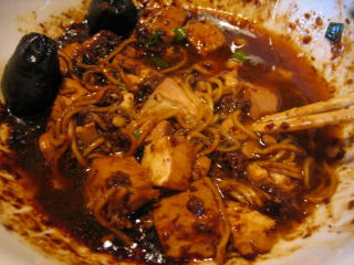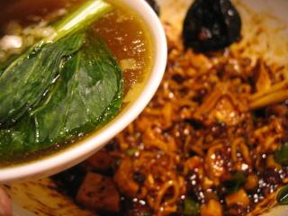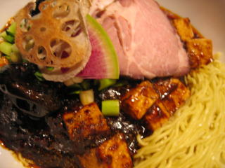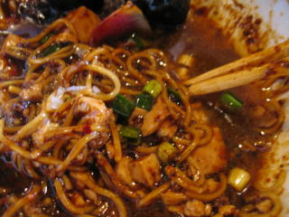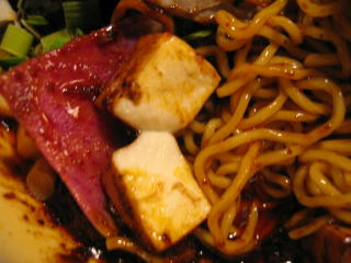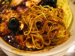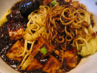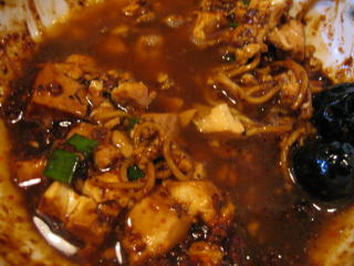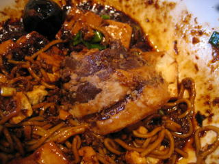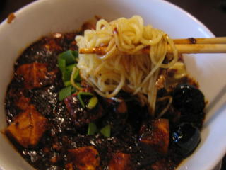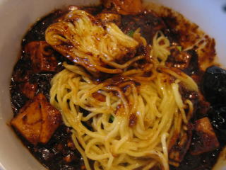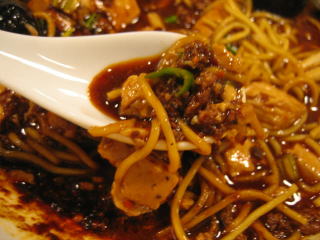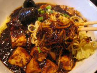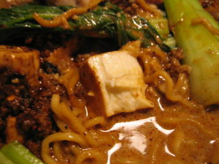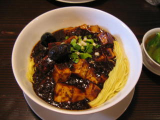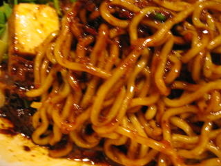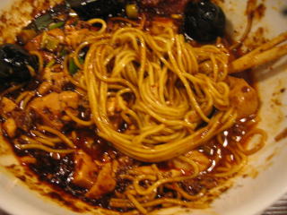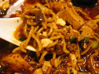 硬い麻婆餡がたっぷり麺の上にかかっています。