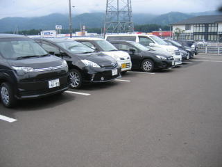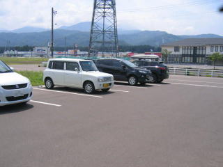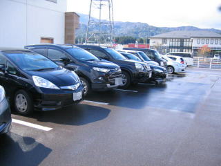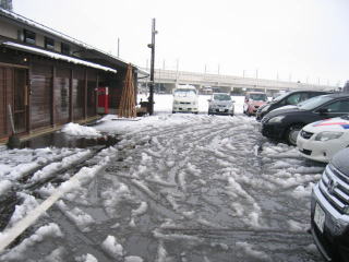 駐車場は満車、1〜2台が路上駐車していましたが、たまたま1台車が出たのでそこへ駐車です。