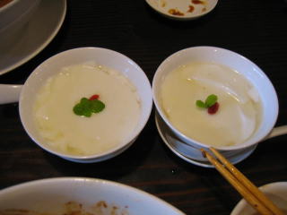 辛い麻婆餡で熱く火照った体を冷やすに最高の、冷たくてほんのり甘い杏仁豆腐です。