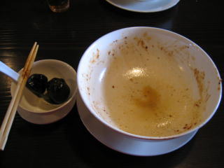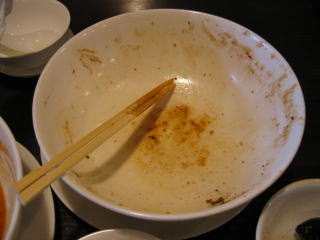 スープもいただき、どんぶりの縁に付いた餡も青梗菜で拭き取り完食です。