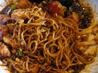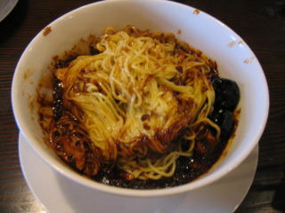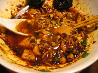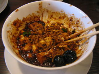 まずは麻婆麺、汁なしタイプですから、麻婆餡を良く麺に絡めていただきます。