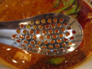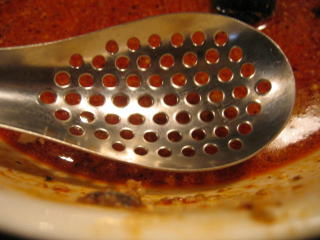 穴あきレンゲ、どんぶりの底に沈んでいる美味しいものをいただくときに、これがとても役立ちます。