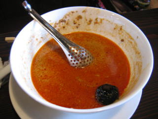 半分以上汁なしでいただきましたが、〆はスープを入れていただきます。