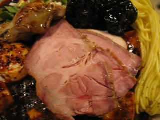 そして店主さまの心遣いもあってとても豪華、赤みのレアなチャーシュー、鶏のチャーシュー、味玉などです。