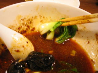 どんぶりの縁に就いた麻婆餡も、青梗菜でふき取って、フープに溶かし込んでいただきます。