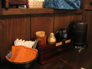 今日はレジ後ろの、長い方のカウンター席の左端の席です、レンゲは2種類あります。