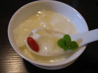 8割がた頂いたところ、絶妙なタイミングで「杏仁豆腐」登場です。