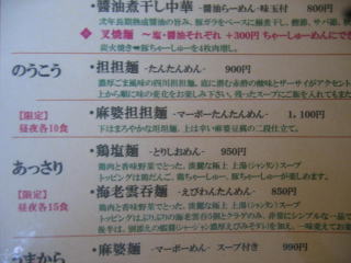 平成28年になってから新しいメニューになって「麻婆担担麺」などが加わっています。