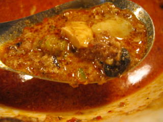 麻婆麺、半分ほどいただいたところでスープを入れます。