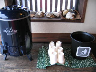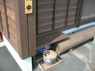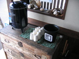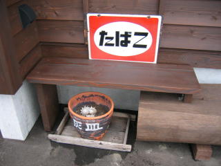 「支度中」の札の下には灰皿があります。