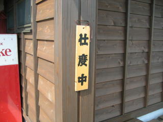 玄関わきの札も「仕込み中」に変わりました。
