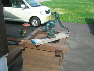 駐車場の奥になぜか「井戸ポンプ」がありますが、井戸水が出るのかは不明です。