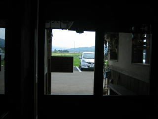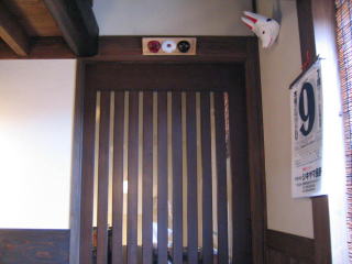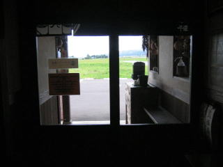 玄関室内の奥の壁のガラス窓からのぞくと、店内2席のカウンター席の窓側には引き戸?の中の様です。