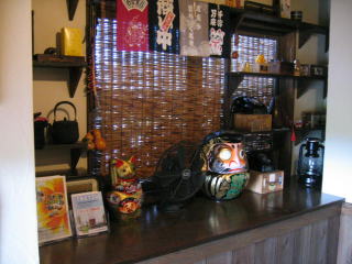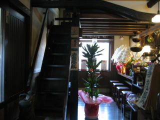 短い方のカウンター席は、お祝いの花がたくさん来ています、