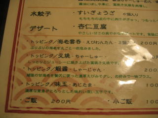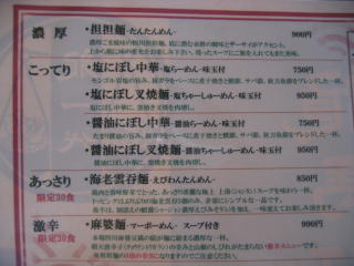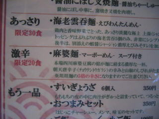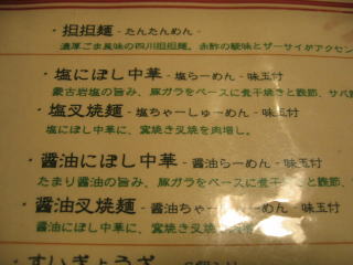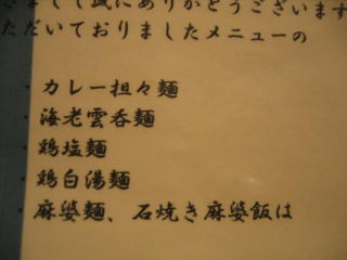 「カレー担担麺、海老雲呑麺、麻婆麺」などは現在お休み中です。
