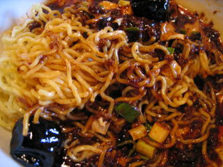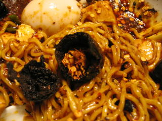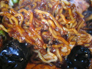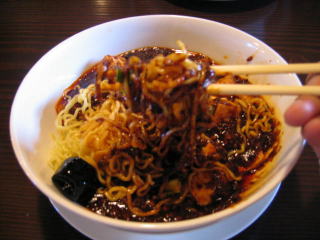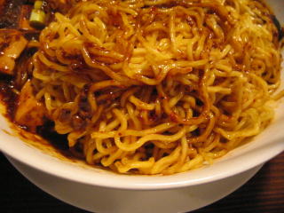 固い餡に麺を良く麺に絡めていただきます。