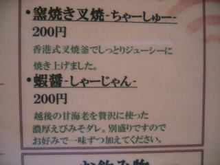 3つ目の注文は「蝦醤-しゃーじゃん-」200円です。