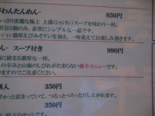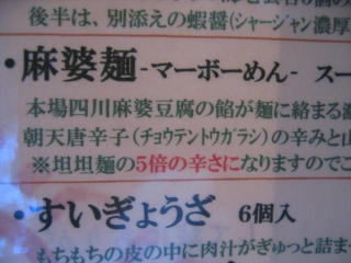 「担担麺の5倍の辛さ」とメニューに書かれています。