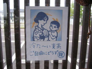 「冷た〜い麦茶」のサービスが始まった様です、美人女性店員の古川さんが用意をしていました。