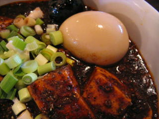 ネギ、味玉、チャーシュー、豆腐などなど乗っています。