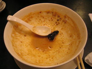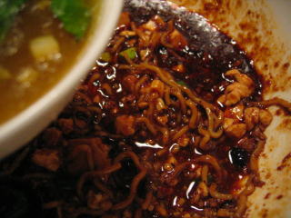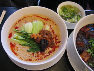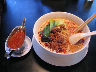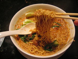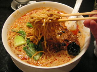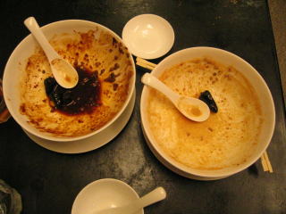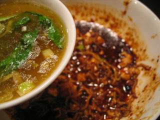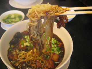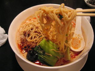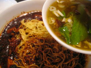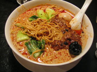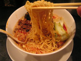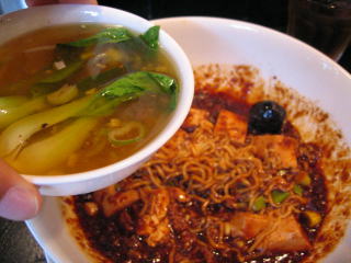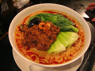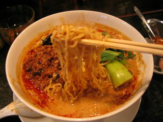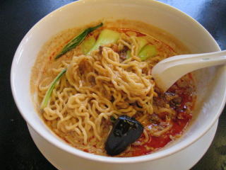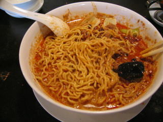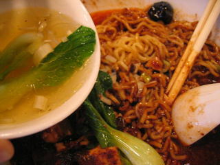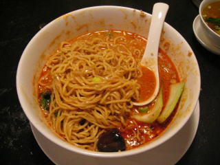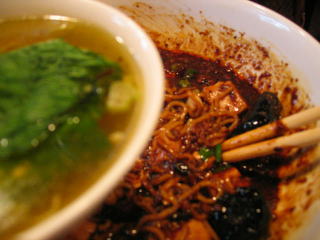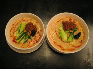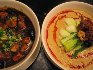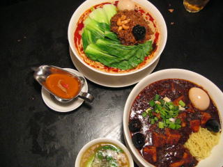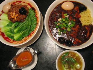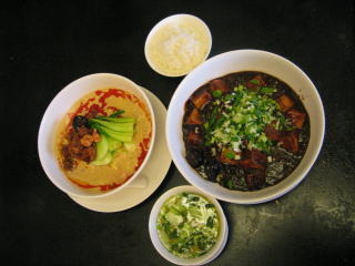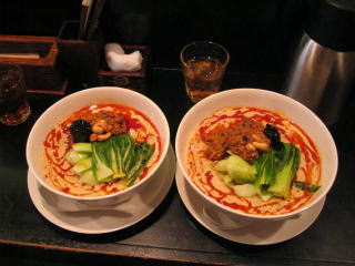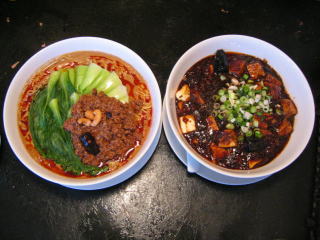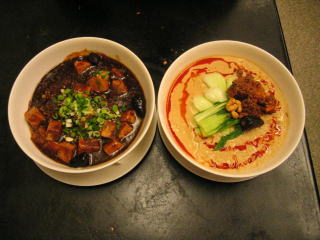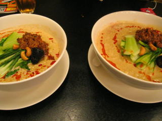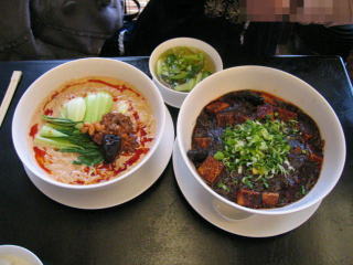 「担担麺」が来てから2〜3分、「麻婆麺」が来たところで記念写真?です、どちらも美味しそうです。