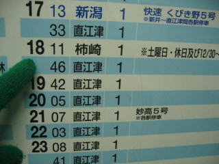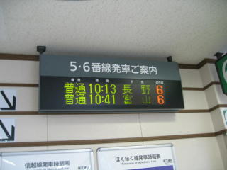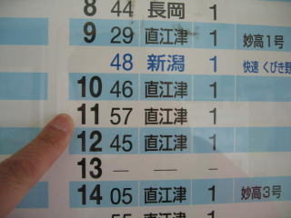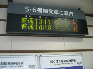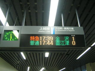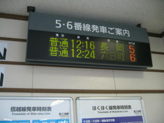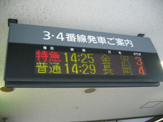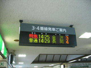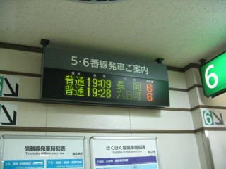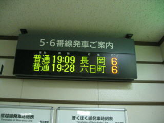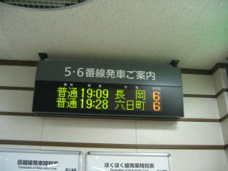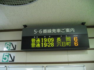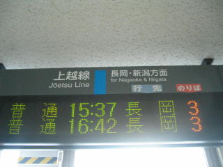 直江津駅で乗り換えて、長岡駅には午後9時37分につきました。