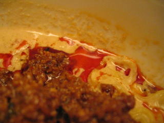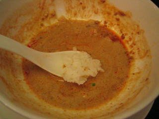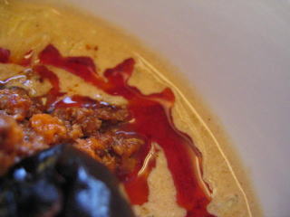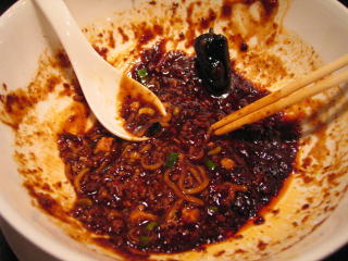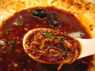 七味唐辛子?のツブツブが見える、見るからに辛そうです。