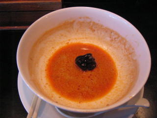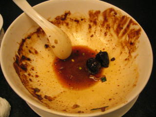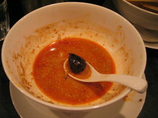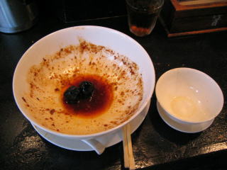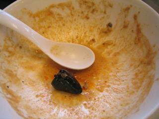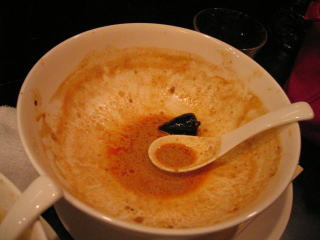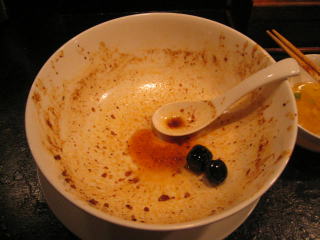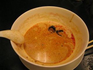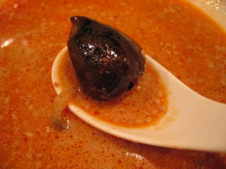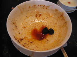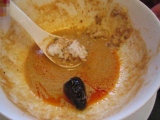 半分ほどいただいたところで、スープを半分ほど入れて、自家製?汁あり麻婆麺です。