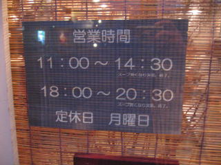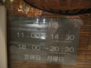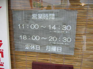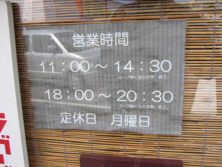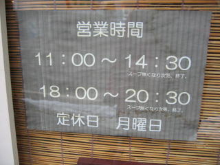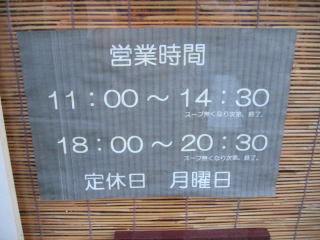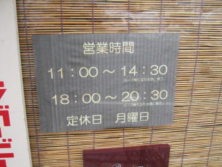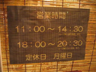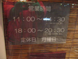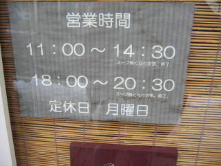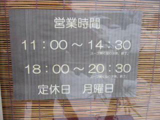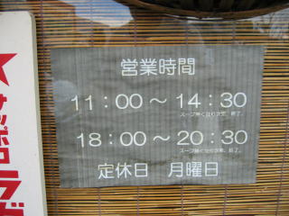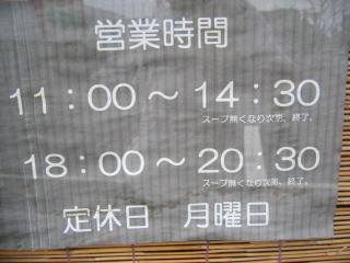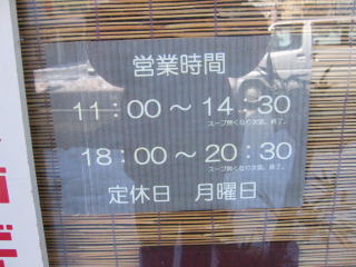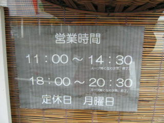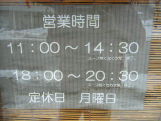 営業時間:11:00〜14:30、18:00〜20:30(スープ無くなり次第 終了)