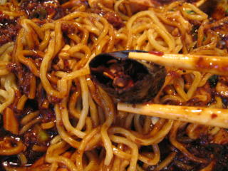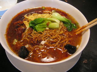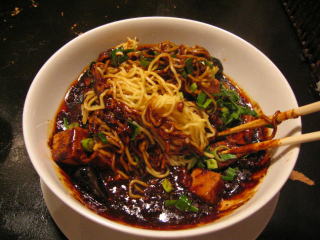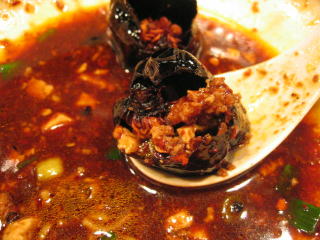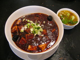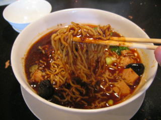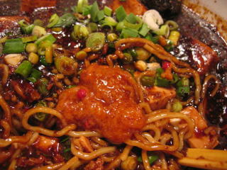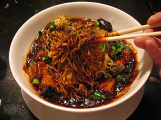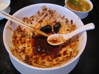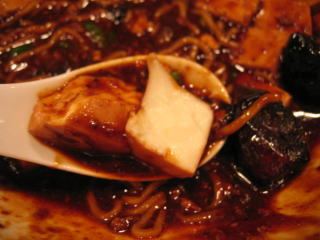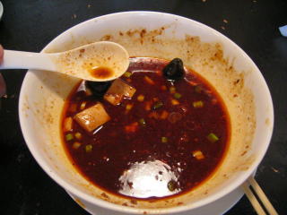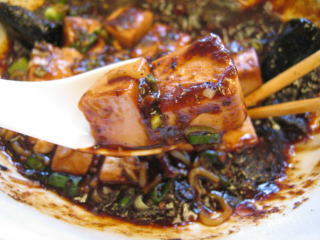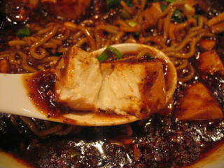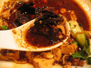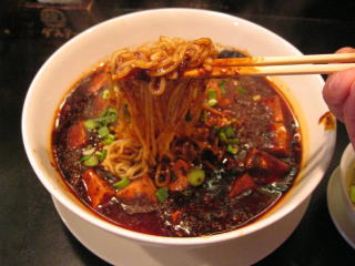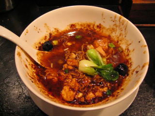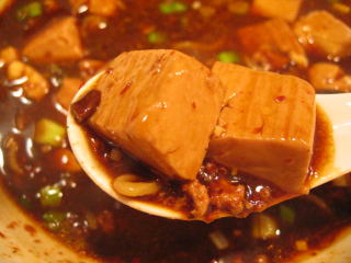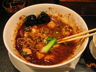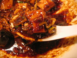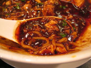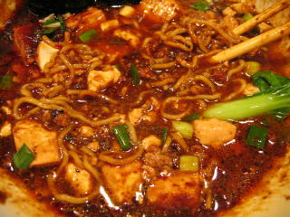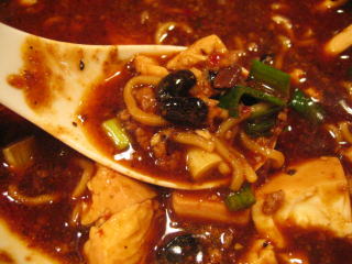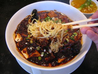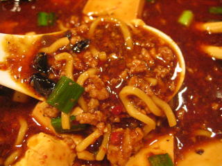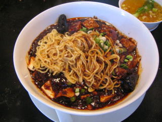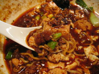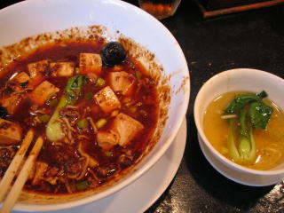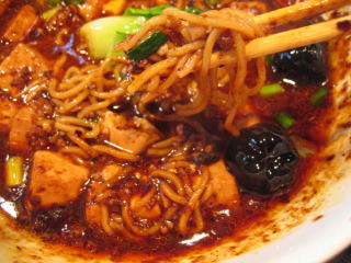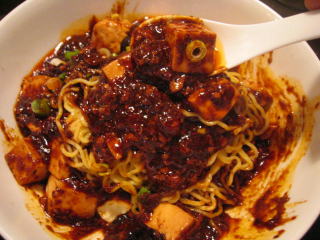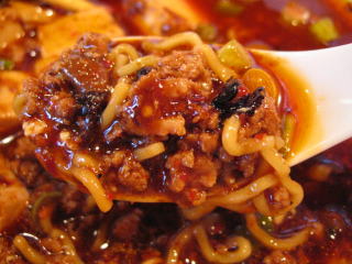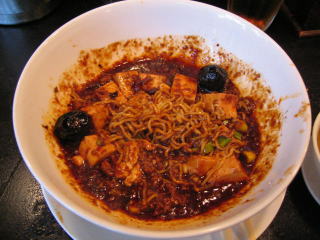 10分ほどで登場、辛くて美味しそうな麻婆麺、回り道して4時間以上かけてきた価値があります。