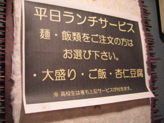 平日ランチサービス品は「ライス」1つ、「杏仁豆腐」2つ、これも決めて来ました。