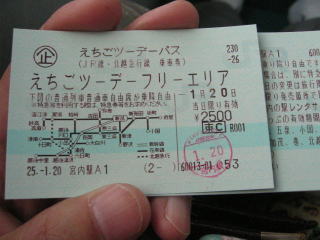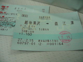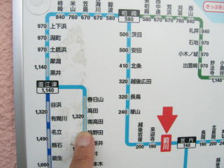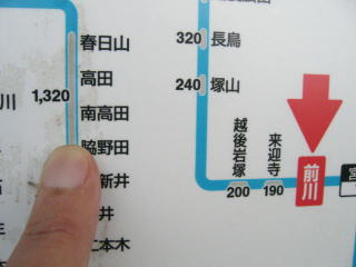 長岡駅午後3時39分発の新井行きの電車に乗りました、電車賃は1.450円です。