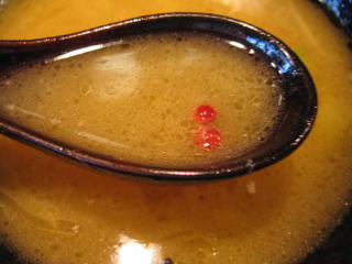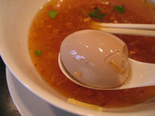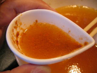 黄金色の1杯、油のせいかスープは冷めずとにかく熱い熱い。