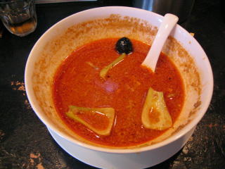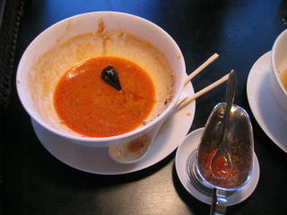 いつものように一口目は上がってくる辛い蒸気でむせます。