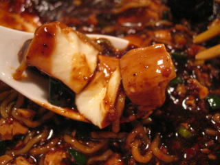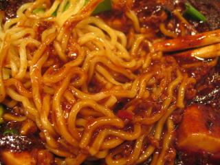 水気の少ない、こってり目のプルプルの餡がかかった「麻婆麺」です。