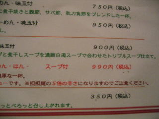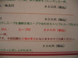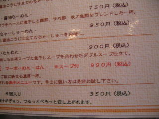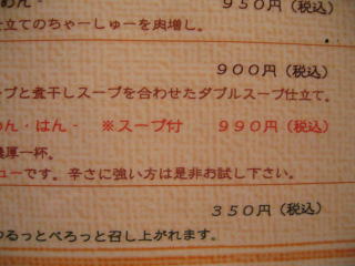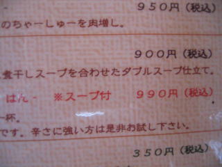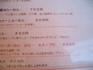 今日は「上湯麺」500円、「担担麺」800円、「麻婆麺」900円と決めて来ました。