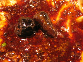 辛い「揚げ唐辛子」が3個も入っている・・・。