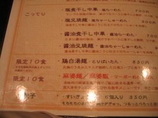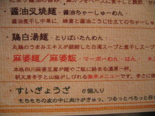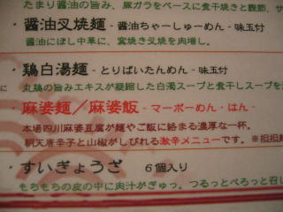 「麻婆麺」と「担担麺」にしようと考えていただけに残念です。