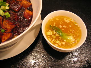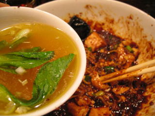 麻婆麺」の辛さを「上湯麺」のスープと「杏仁豆腐」で洗い流します。