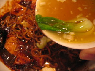 途中でスープを入れて、汁あり麻婆麺にしていただきます。