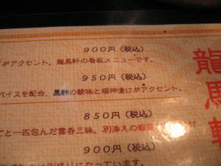平成24年3月4日(日)の夕方、上越市の「担担麺 龍馬軒」さんにお邪魔しました。