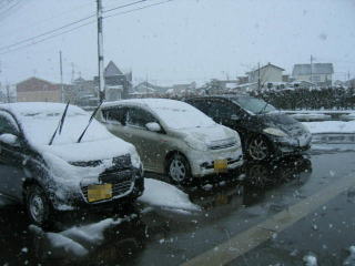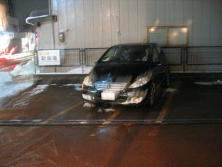 あれれ、お巡りさんがいます、駐車場で事故でもあったのかしら?