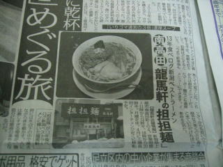 平成27年1月23日の「スポーツニッポン紙」に上越市の「担担麺 龍馬軒」さんの記事が掲載されていました。