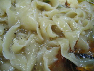 麺は平たく厚みが不均等、小麦の塊から削り出す(切り出す)様です。