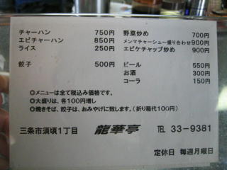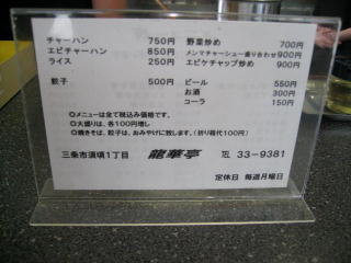 平成25年5月3日(金・祝日)の夕方 三条市の「龍華亭」さんにおじゃましました。